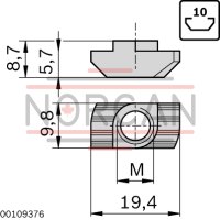 The Bosch Rexroth T-NUT (3842530287) is a versatile and essential component designed for creating secure and conductive connections within aluminum structural framing systems. This particular T-nut is engineered to fit into a 10 mm profile slot while accommodating an M8 thread size, making it suitable for a wide range of applications where fastening elements are required. The steel construction of the T-nut ensures durability and strength, while the galvanized finish provides corrosion resistance, enhancing the longevity of the connection. The design of this T-nut includes a stop feature that aids in correct positioning within the profile slot, eliminating guesswork during assembly and ensuring a reliable fit. Additionally, no profile finishing is required when installing this T-nut, which simplifies the assembly process and reduces overall installation time. An important capability of the Bosch T-NUT is its compatibility with insulating cover caps. These caps are used to decouple directly grounded components when using T-nuts for 8 mm slots in a 10 mm slot. This feature is particularly beneficial in applications where electrical isolation is necessary to prevent short circuits or other electrical hazards. Overall, the Bosch T-NUT (3842530287) stands out as a standard element for constructing robust frameworks in various configurations while providing the flexibility to meet specific electrical insulation requirements when necessary. Its ease of use and reliable performance make it an indispensable hardware piece for professionals working with aluminum structural systems.